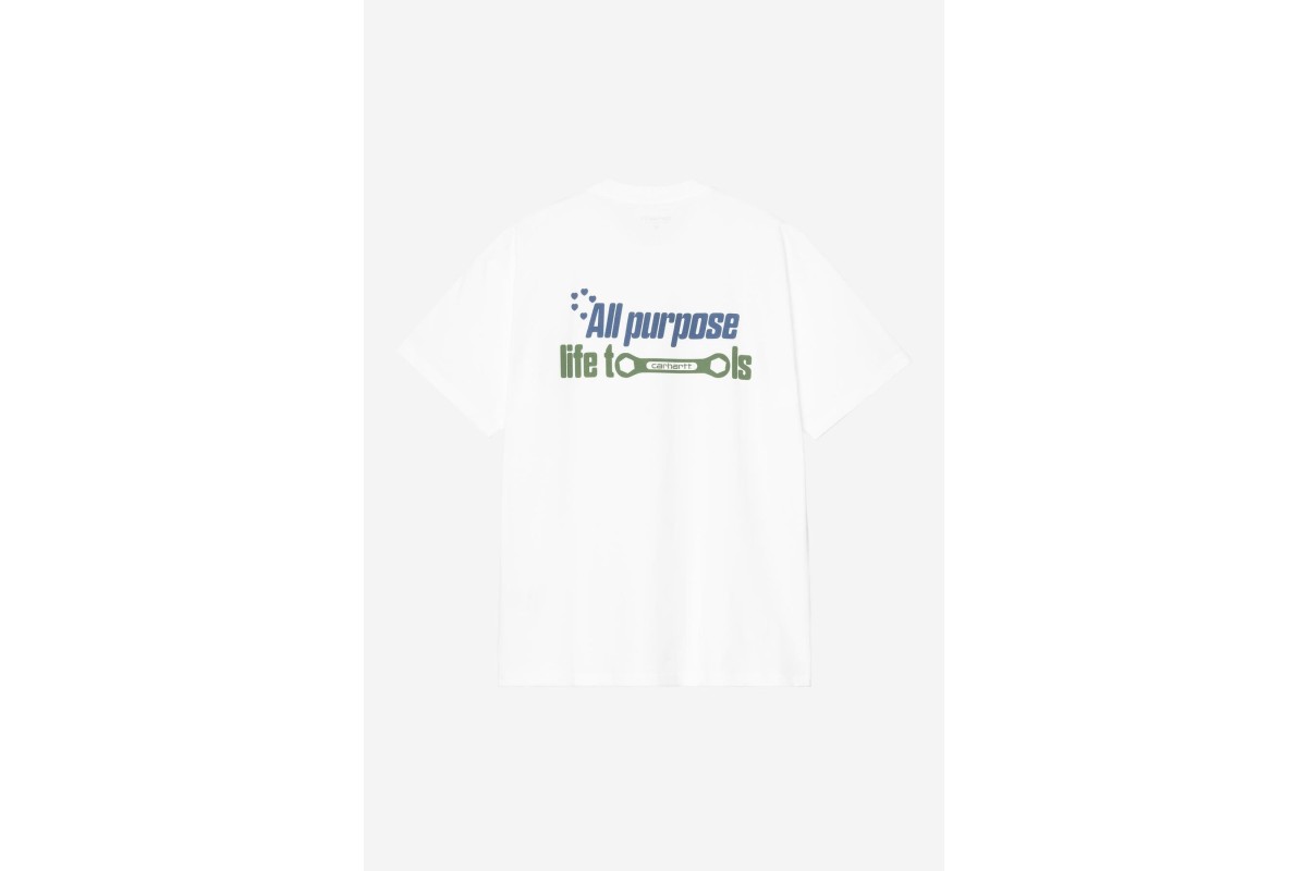 The S/S All Tools T-Shirt is made in a loose fit from midweight organic cotton jersey. Graphic prints appear on the front and back.