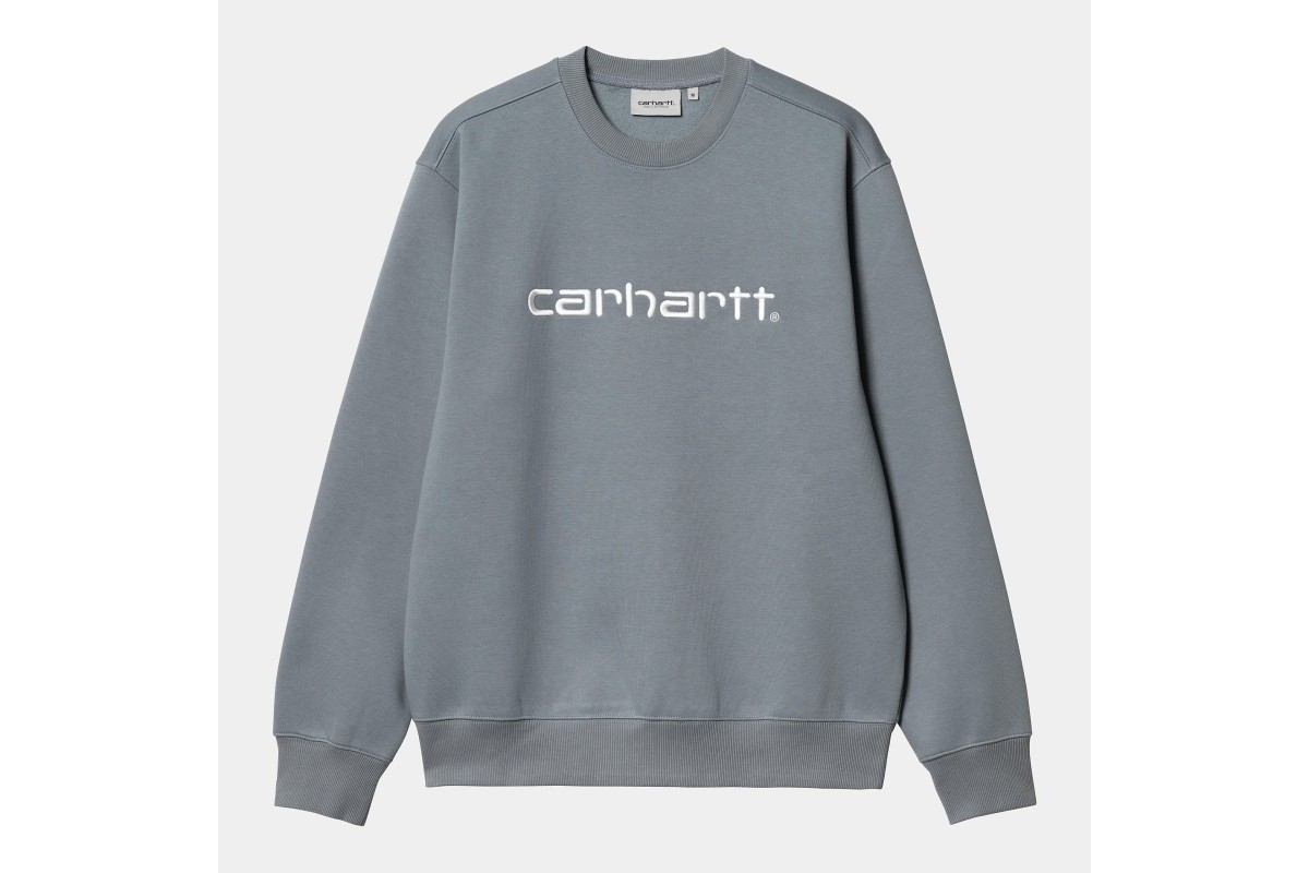 The Carhartt Sweatshirt is made in a loose fit from heavyweight cotton-poly jersey fabric, which has been brushed for a fleece-like backing. It also features a ribbed collar, hem and cuffs. An embroidered Script Logo appears across the chest.