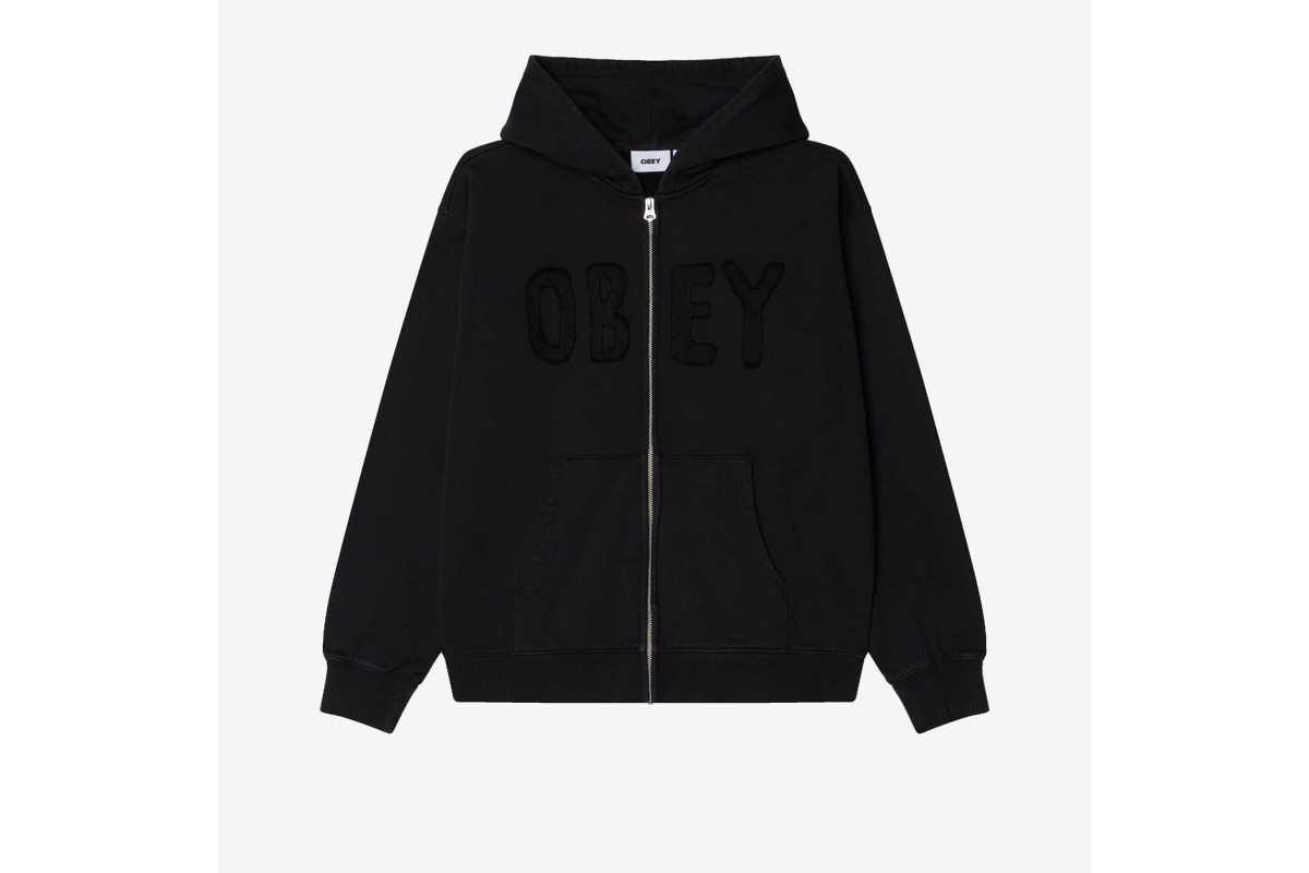 OBEY Hybrid Faded Extra Heavy Zip Hood Digital Black Faded Wash